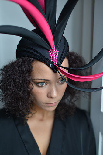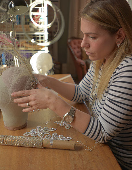 Manchester-based milliner, Kate specialises in creating striking and beautiful bespoke hats & headdresses from her home studio in Sale. Kate graduated with a 1st class honours degree in Fashion Design, in 1998, and went on to work in theatrical costume for a leading design company; Stageworks Worldwide Productions. During her time there, she went on to work in the millinery department where she designed and made all the hats, headdresses, and harnesses for shows including Funny Girls, The Hot Ice Show, Eclipse, and many others.